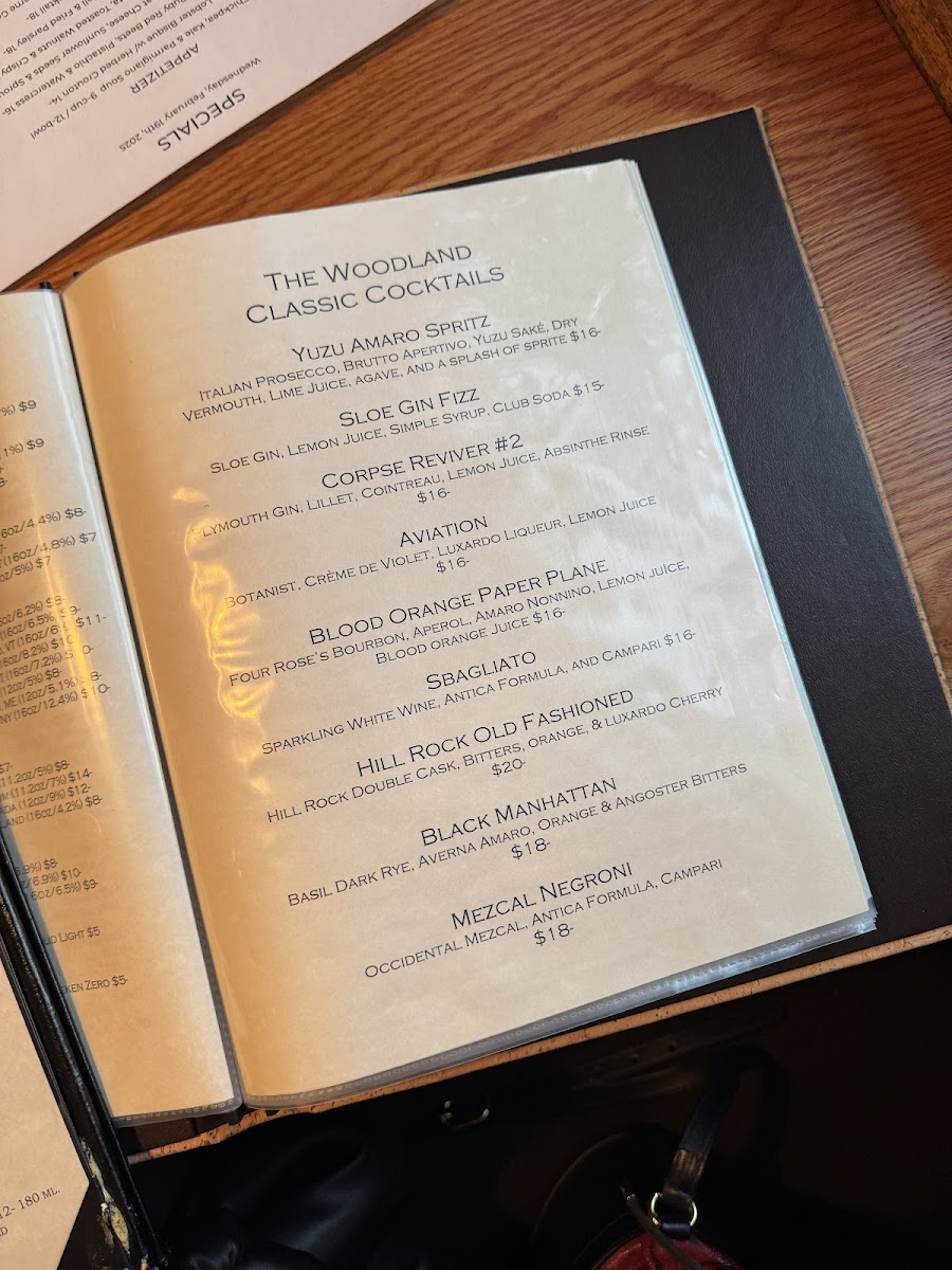 To complement your dining experience, try the unique cocktails such as the Yuzu Amaro Spritz. The ambiance at Woodland is warm and welcoming, making it ideal for any occasion. With exceptional service and a festive vibe, dining here is truly a delightful experience.